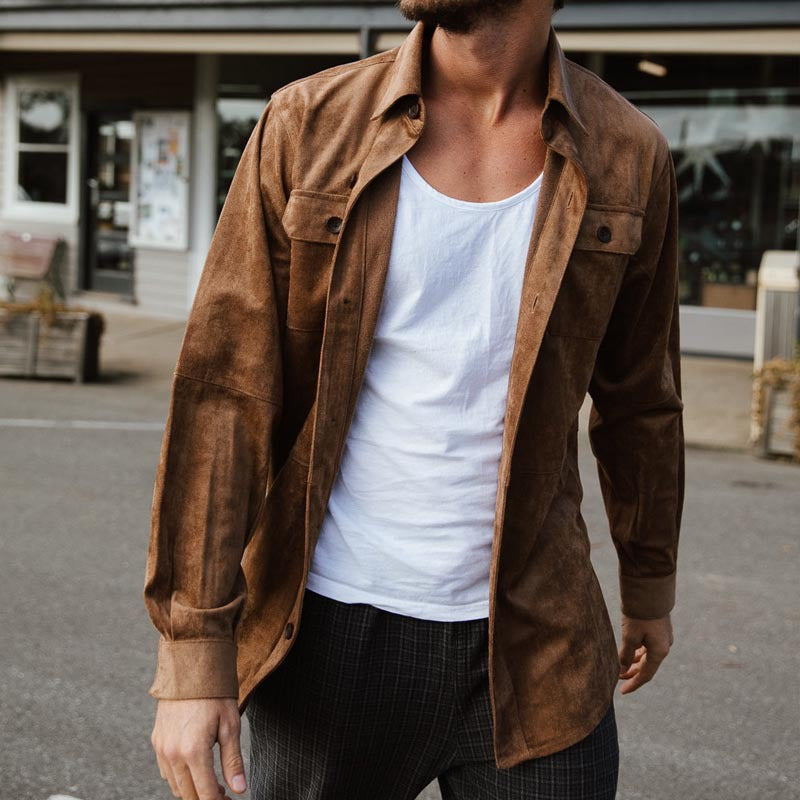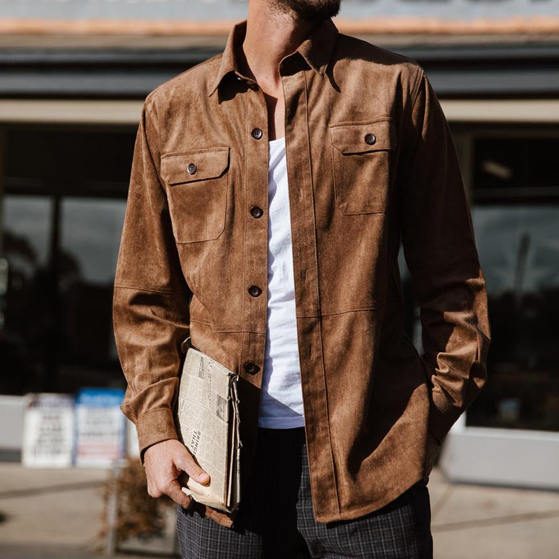 Męska koszula casualowa - zamszowy materiał - regularny krój - zapięcie na guziki z kieszeniami na piersi. Podnieś swój swobodny styl dzięki zamszowej koszuli Couture-Moda zapinanej na guziki. Ta koszula o regularnym kroju zapewnia wygodę i styl, ma dwie kieszenie na piersi i jest miękka w dotyku. Idealna na weekend!