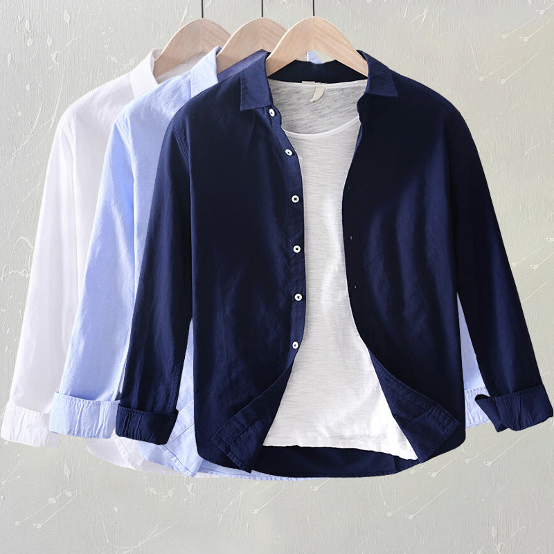 Мужская рубашка на пуговицах - свободный крой, длинный рукав для повседневного отдыха